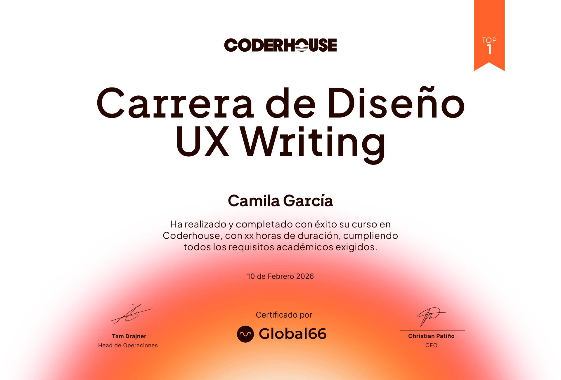 Feliz de haber culminado este curso tan, pero tan práctico en Coderhouse, inclusive desarrollé una idea de negocio (ahora sigue, hacerla realidad), también me llevo muchas herramientas y mayor entendimiento al rol de producto, al cual le estoy empezando tener mucho cariño