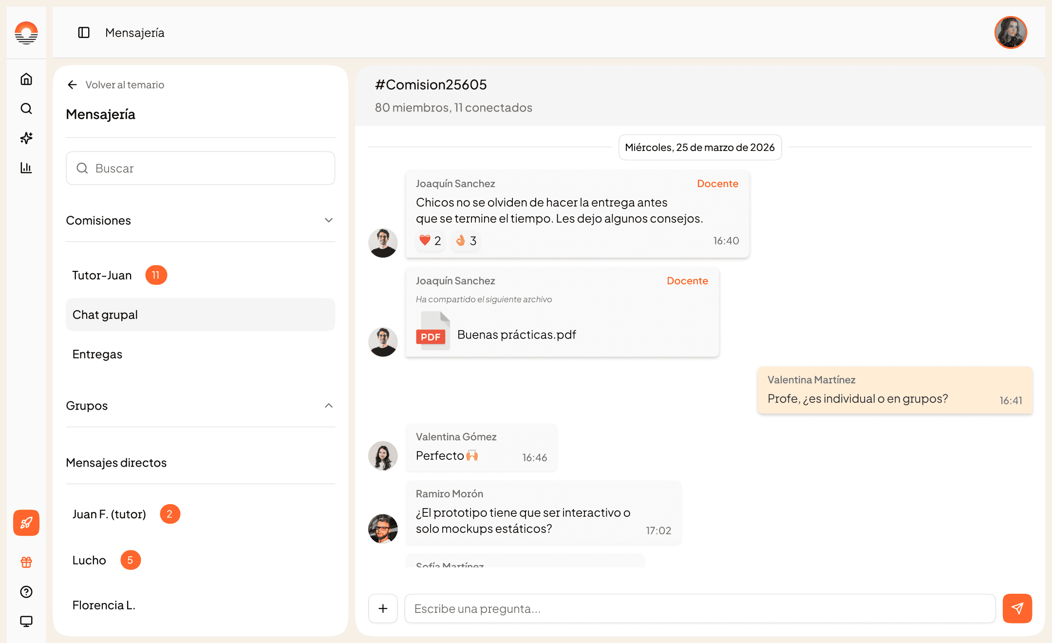 Responde dudas, corrige entregas y acompaña en cada paso. Feedback instantáneo y recomendaciones personalizadas.